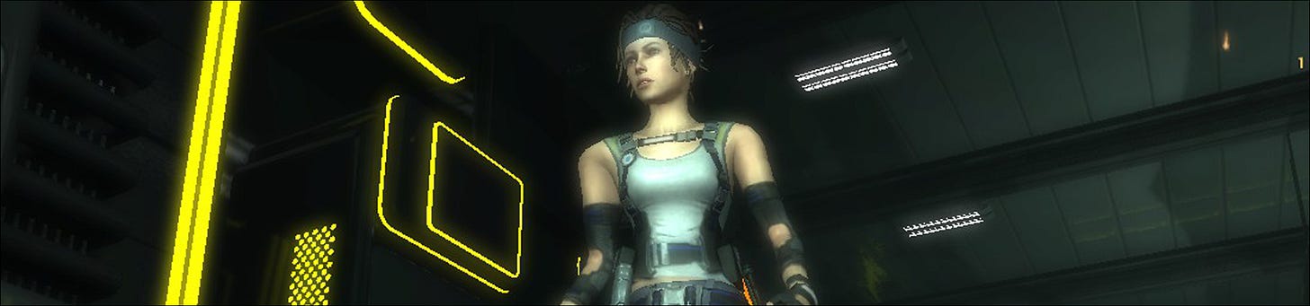 While I can see why this isn’t beloved, its combination of light platforming, light puzzle solving, and strategic cover shooting really hit the spot for me—all at a breezy length! What I most enjoyed was the dynamic between protagonist Kate—whose design I really like—and her earpiece sidekick Scoot. Although I didn’t catch the story’s overpopulation theme until I researched the game, and said story ends on a “Wait, that’s it?” note. Nonetheless, I found it a lot better than what most reviewers are saying.